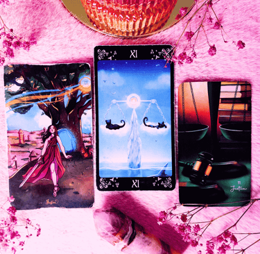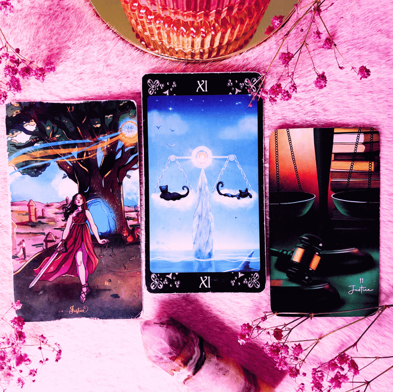 Sprawiedliwość oznacza równowagę, prawdę, odpowiedzialność oraz konsekwencje podejmowanych decyzji. To karta, która pokazuje bezpośredni związek między działaniem a rezultatem, bez miejsca na przypadek czy chaos. Symbolizuje konieczność spojrzenia na sytuację w sposób obiektywny, oparty na faktach i rzeczywistości, a nie na emocjach czy przekonaniach. Wskazuje moment rozliczenia, w którym wcześniejsze decyzje przynoszą konkretne skutki. To energia porządkowania, przywracania balansu i ustalania jasnych zasad. Pojawia się wtedy, gdy sytuacja wymaga uczciwej oceny i podjęcia odpowiedzialności za własne wybory.
